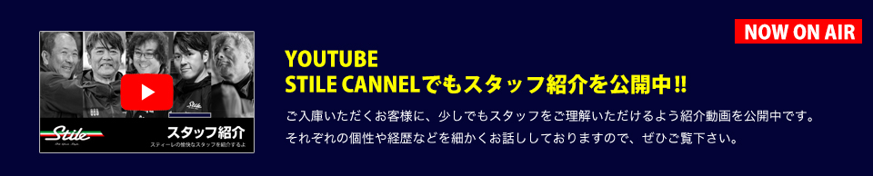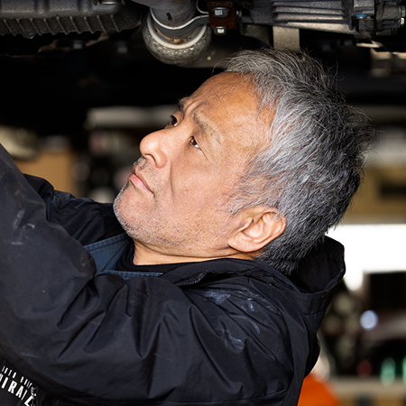横浜店店長。モミアゲの凄さから”モミ”と呼ばれるスティーレの中心的なメカニック。車検やオイル交換、カスタムまで何でもこなし、オールマイティな技術と解りやすい説明でお客様にも人気。愛車は日産オーテック プリメーラ。
