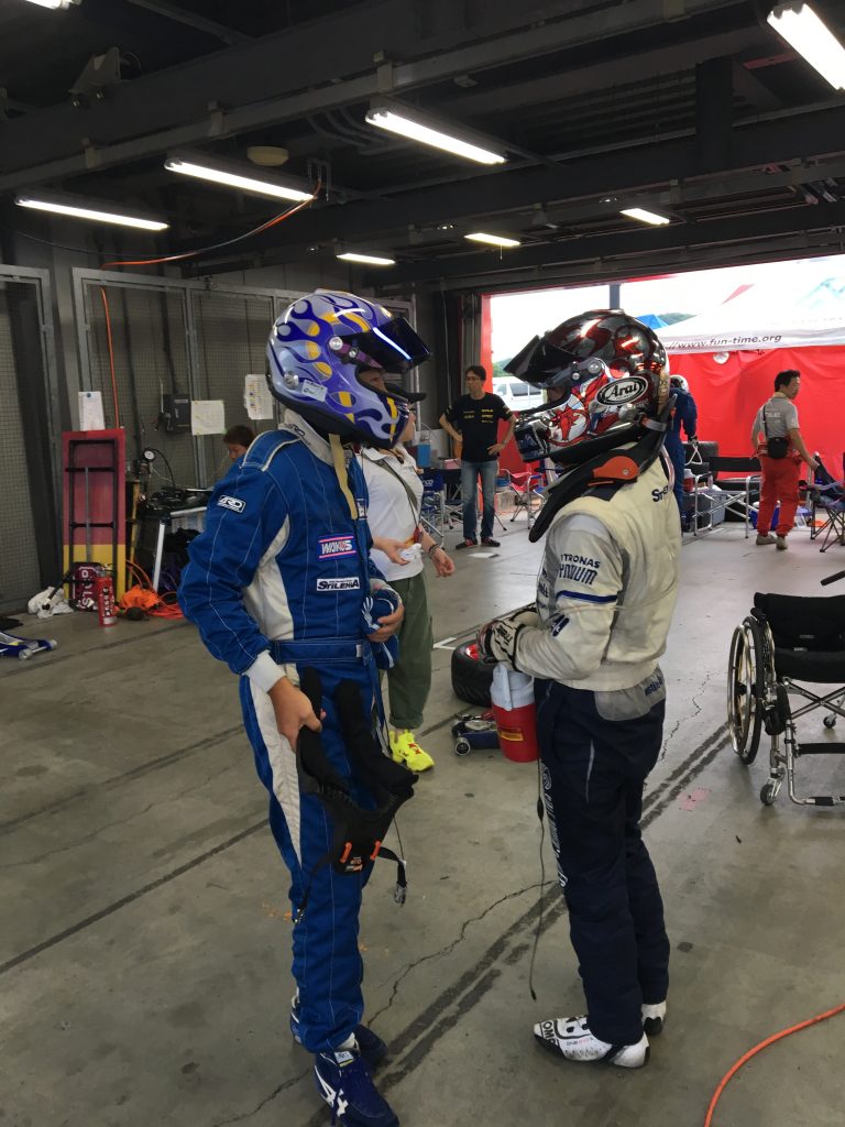 どちらも計ったかのように、レーシングスーツを脱いでパンツ一丁でフルバケシートから降りて来た。