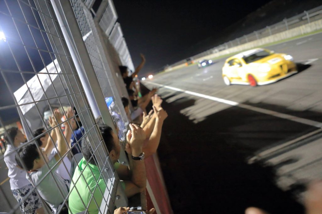 17:42 全車ライトオン。モテギのコースにも夜の帳(とばり)が落ち始める。
